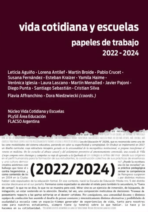 Niedzwiecki, D. & Affranchino, F. (Coords) (2024). Vida cotidiana y escuelas. Papeles de trabajo (2022-2024). CABA. El Zócalo.